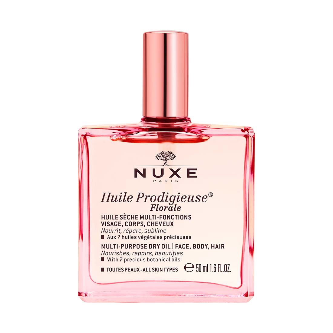 Nuxe Huile Prodigieuse Florale é um cuidado nutritivo reinventado que resulta da combinação de princípios activos: 7 óleos vegetais preciosos (tsubaki, borragem, hipericão, amêndoas doces, camélia, avelã e macadâmia) e Vitamina E